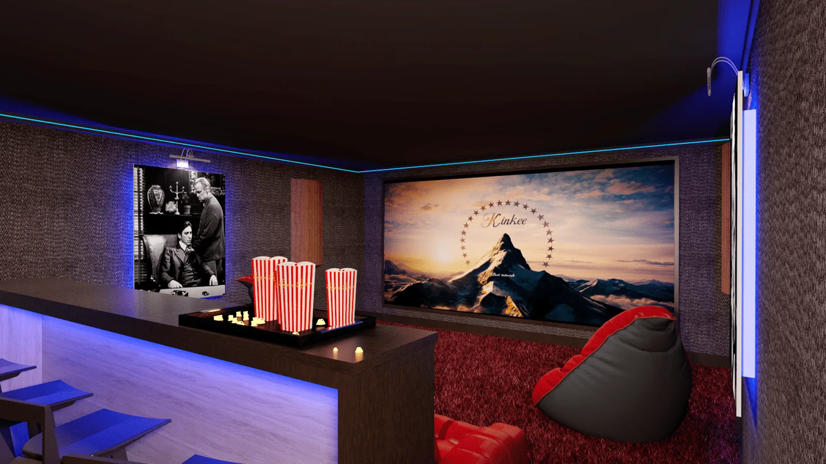 - Приглушенное освещение: Создайте атмосферу кинотеатра с помощью диммеров или настольных ламп.