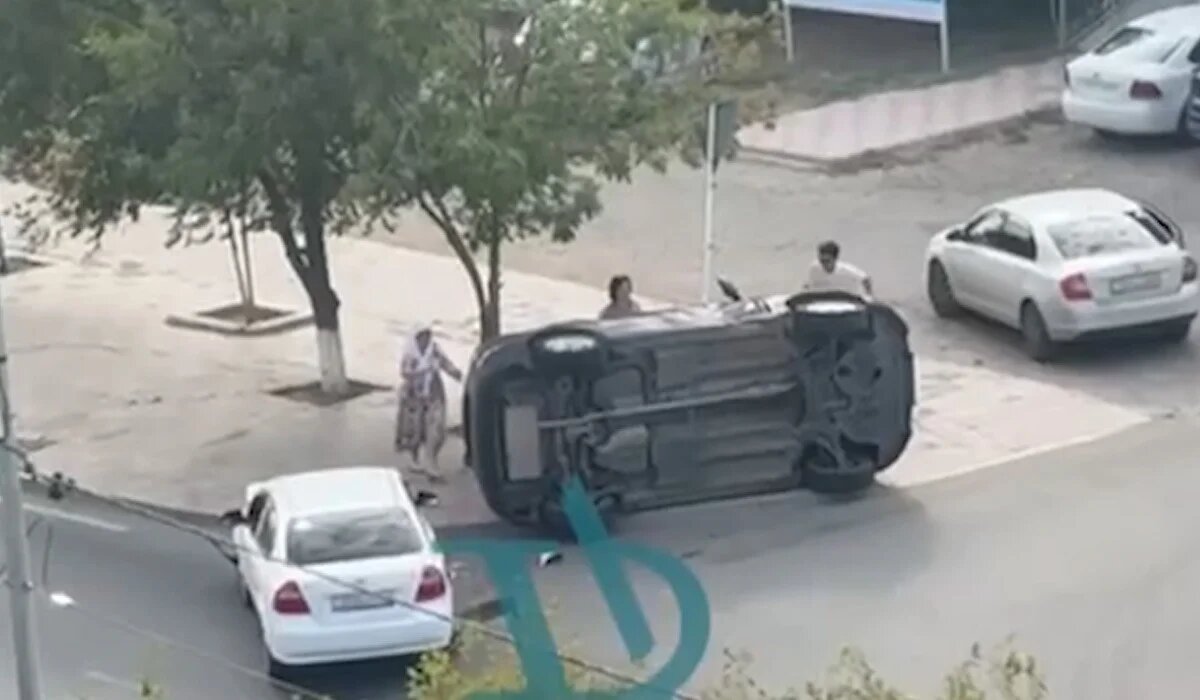 Бабушка помогла поставить на колеса перевернувшуюся машину в Атырау (ВИДЕО)