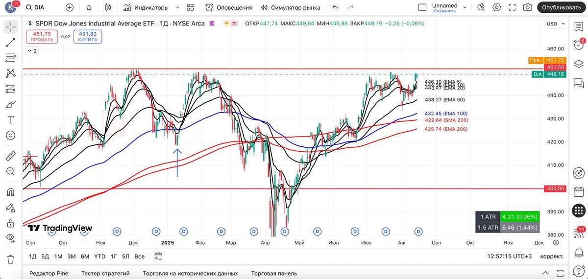Все, как и предполагалось! Вот такой эффект получаем от ежедневной рутинной работы — мы буквально взламываем фондовый рынок. $DIA обновляет исторический максимум на премаркете, и, как всегда это происходит, в момент низкой ликвидности. Конечно, нам важно увидеть основную сессию, но это уже ознаменует хороший позитивный сигнал для среднесрочного тренда. Промышленность поможет $SPY держаться у максимумов, а далее, после отдыха техов, пойдут за новыми историческими максимумами. Еще одна отличная новость! Вчера, после завершения торгов, компания Уоррена Баффета Berkshire Hathaway $BRK.B сообщила о покупке доли в UnitedHealth ($UNH) на $5 млрд. В данный момент показывает на премаркете : $UNH: +12,75% Плечевой ETF $UNHG : +25,25% ВСЕ СЛУЧАЙНОСТИ НЕ СЛУЧАЙНЫ! Получаем, как всегда, положительные новости на закономерностях. Хоть я и ожидал более долгой консолидации, получилось даже лучше, чем ожидалось. Скажем спасибо старине Уоррену за его огромное влияние на рынок! Ребята, вы воспользо