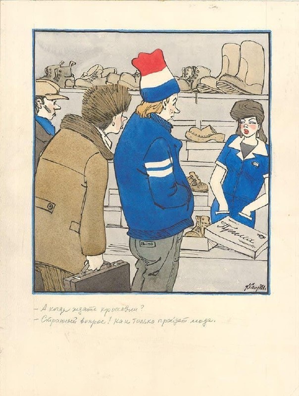 "- А когда ждать кроссовки? - Странный вопрос! Как только пройдет мода" Карикатура, СССР, 1984 год. Ретро фото 📸 (https://t.me/retrocam) Еще больше новостей на наших сайтах: https://sukhodolskiy.ru/ - блог фотографа https://backnews.ru/ - Москва и мос обл. https://spbkadr.ru/ - Санкт-Петербург https://t.me/G00DPhoto - хорошие кадры Редкие кадры ушедшей эпохи. Эксклюзивные фото и моменты истории 📷 Присоединяйтесь к нашему новостному каналы: https://t.me/BackNews_ru #ретрофото @retrophotos подписывайся Еще больше новостей на наших сайтах: https://sukhodolskiy.ru/ - блог фотографа https://backnews.ru/ - Москва и мос обл. https://spbkadr.ru/ - Санкт-Петербург https://t.me/G00DPhoto - хорошие кадры