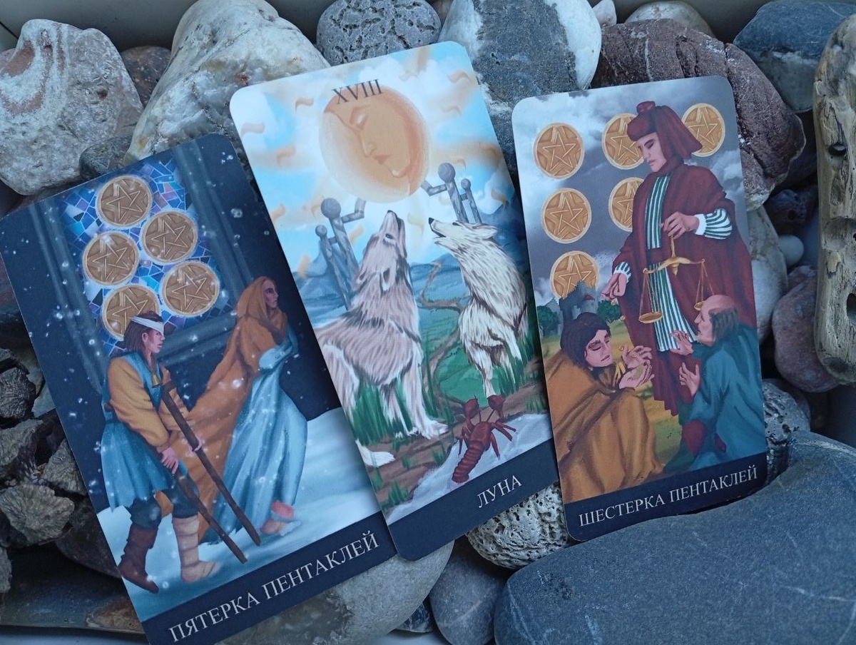 -Ну явно, что он делит деньги на два потока. Всегда Шестерка пентаклей выходит. Ваш муж точно дает деньги на две стороны. И он считает, что поступает правильно...