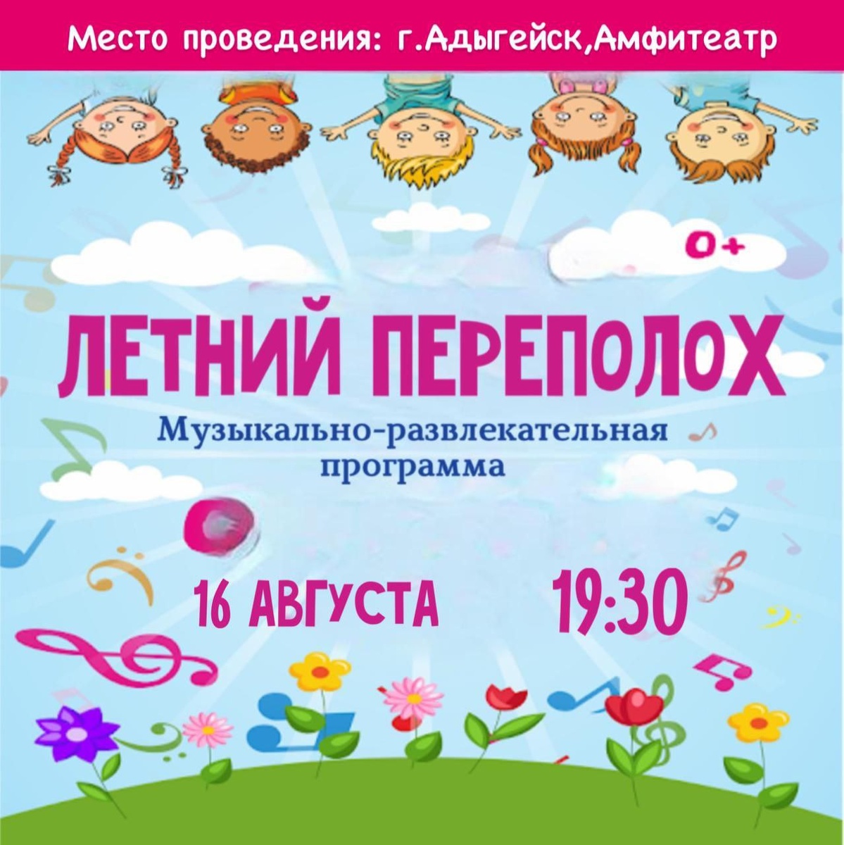 Дорогие друзья! Приглашаем вас окунуться в атмосферу летнего праздника и отличного настроения! 16 августа в 19:30 в живописной парковой зоне - амфитеатре, состоится музыкально-развлекательная программа "Летний переполох". Вход свободный! Ждём вас в парковой зоне! До встречи на "Летнем переполохе!" #Адыгея #Адыгейск