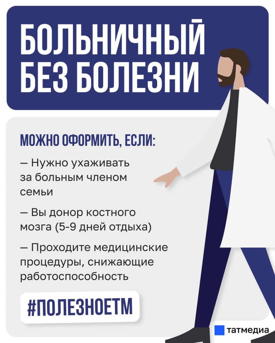 В ответ на пост 👩⚕️📃 Татарстанцы могут взять больничный даже без болезни И это законно. Рассказываем – в карточке. @tatmediaofficial | Все каналы Татмедиа