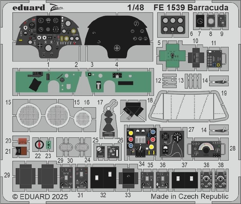 Eduard из Чехии выпустила два набора фототравления для деталировки модели Barracuda в масштабе 1/48 от Trumpeter: Barracuda (каталожный номер FE1539) Barracuda seatbelts (FE1540)