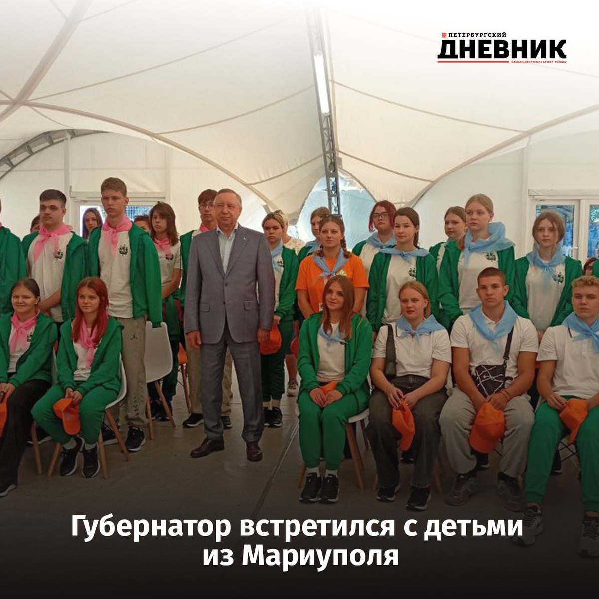 Александр Беглов посетил открытие смены в детском оздоровительном лагере «Дружных», где сейчас отдыхают 200 детей из города-побратима Мариуполя. В рамках знакомства с ребятами градоначальник поделился, о какой профессии он мечтал в детстве.