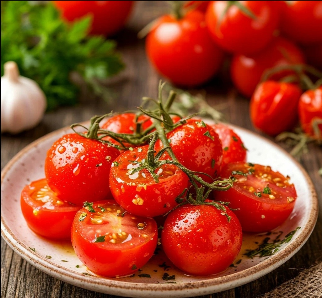 - Помидоры: Около 600-700 г (выбирайте плотные, не перезрелые, без повреждений, одинакового размера). Идеально подходят сорта "сливка", "дамские пальчики", "черри".