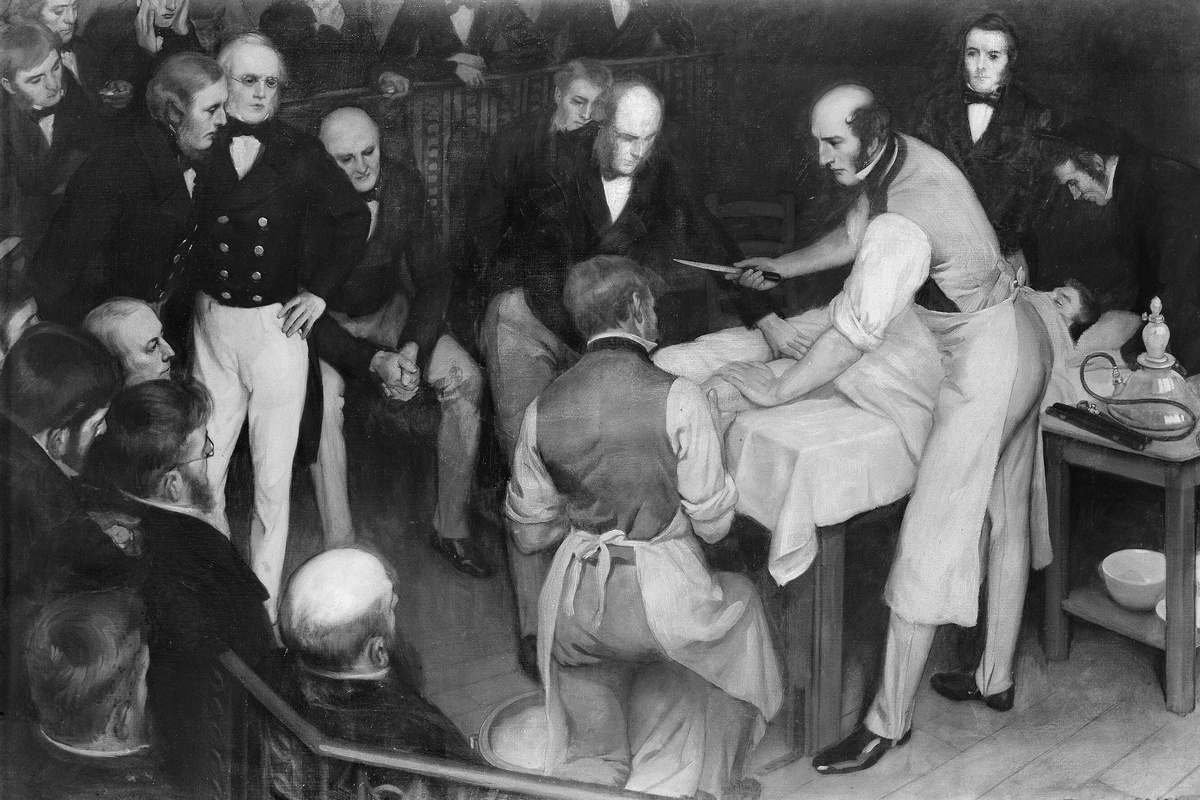 В первой половине XIX века больные могли только мечтать об анестезии, поэтому скорость проведения операций играла огромную роль. Шотландский хирург Роберт Листон прославился как раз благодаря умению работать очень быстро. Например, он мог ампутировать ногу за две-три минуты. Конечно, не обходилось без неудач: по легенде, однажды Листон случайно отрезал больному вместе с ногой еще и яички. Впрочем, несмотря на это, Роберт отличался не только скоростью, но и результативностью: лишь каждый десятый пациент хирурга умирал — по тем временам это был очень хороший показатель. Но операция с «300%-й летальностью» осталась пятном на репутации Листона. Пока Роберт ампутировал пациенту ногу, больного держали медбратья — в качестве сурового аналога анестезии. Орудуя пилой, хирург случайно отрезал своему ассистенту пальцы. Одному из зрителей, присутствовавших на операции, стало плохо — престарелый мужчина скончался от сердечного приступа. А через несколько дней от заражения крови умерли и пациент,