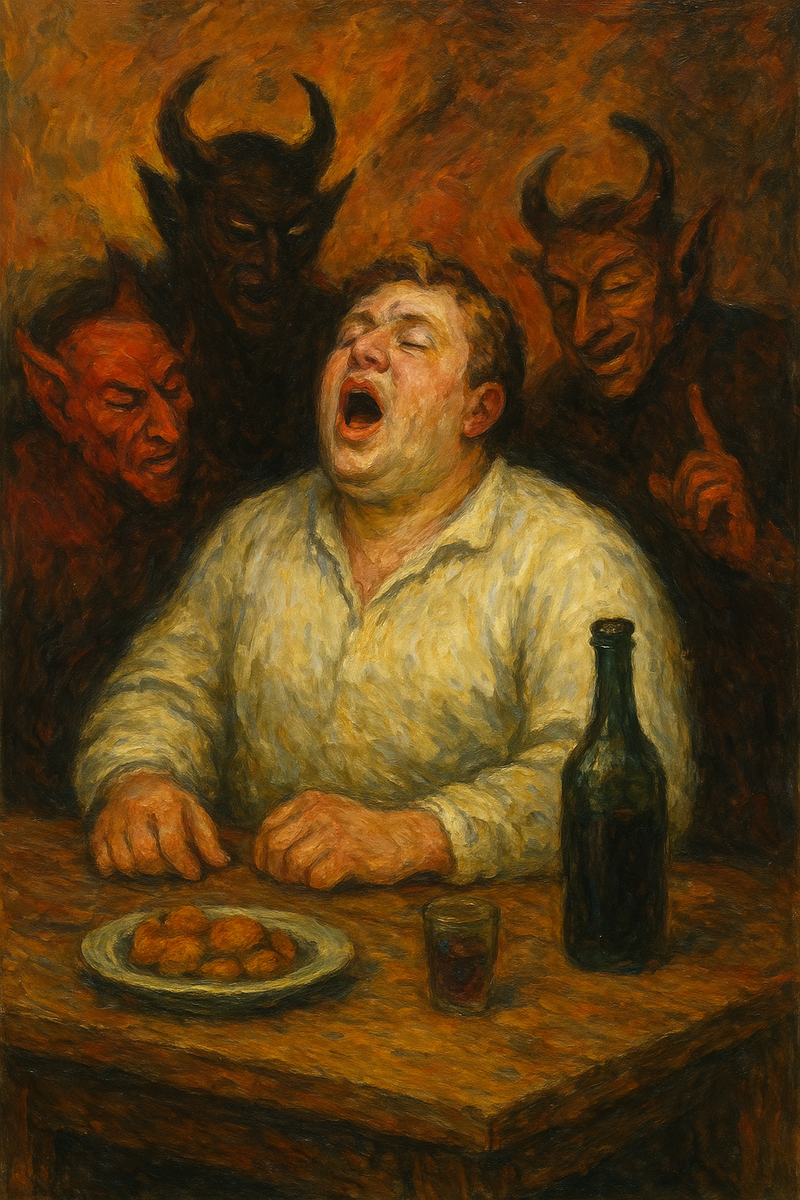 Это основное мистическое объяснение. Считалось, что нечистая сила обожает хаос, шум и любое проявление неуважения к святыне. Когда человек начинал петь за столом, он нарушал благоговейную тишину и своим легкомыслием как бы "открывал портал", приглашая чертей присоединиться к веселью. А такое "соседство", естественно, не сулило ничего хорошего- оно приносило в дом ссоры, болезни и нищету.
