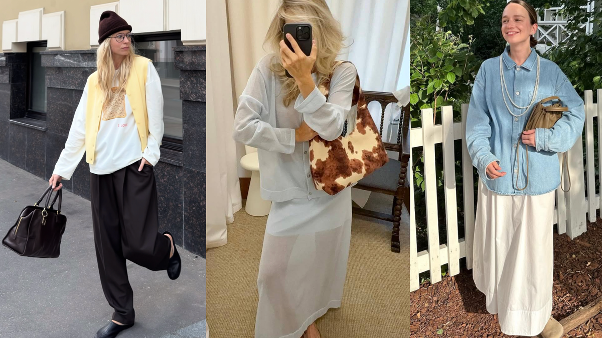 Собрали лучшие образы наших покупательниц, чтобы вдохновить вас на стильные сочетания в августе 2025. Лёгкие платья, жакеты с изюминкой, уютные кардиганы и женственные юбки — идеи, которые подойдут как для города, так и для отпускных прогулок. 🔗Невесомый комплект, словно вуаль, в трикотажном исполнении: юбка и кардиган Образ вдохновляет на уютные августовские прогулки вечерами, на встречи с подругами и нежные свидания. Легкость небесно-голубого и теплоту песочного в балетках хочется носить бесконечно. И, конечно, легкая дерзость – в сумке с коровьим принтом. 🔗Трикотажный сливочно-желтый жилет и джинсы пудрового розового цвета, сверху жакет с вышивкой с собачками. Эта нежность на Марии Чеховой Идея сочетания для тех, кто ценит игру цвета. Хочется рассматривать каждую деталь: как вышивка перекликается с теплом жёлтого топа, а пудрово-розовый оттенок подмигивает тем, кто влюблён в романтику. 🔗Лонгслив с тостовым хлебом в виде принта, трикотажный жилет и шоколадные брюки на стилисте Мар