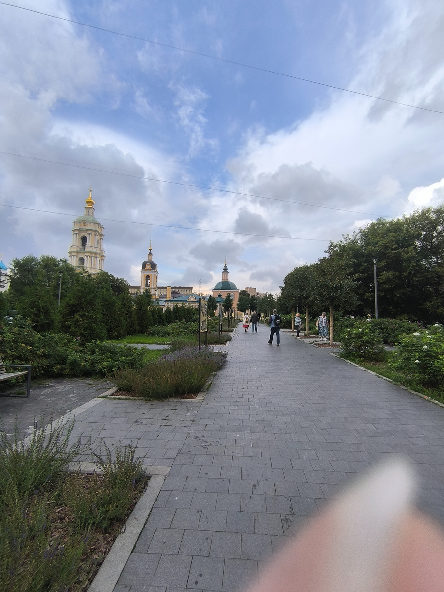 Направляясь к Новоспасскому монастырю, прохожу через сквер. Он находится перед храмом Сорока Севастийских мучеников. Почему то хочется обратить на него особое внимание. Я не знаю его названия, на карте тоже не нашла. Если кто знает и напишет мне, буду благодарна. Еще лет 5 назад этого не было. Я как то гуляла здесь весной. На этом месте была искусственная сакура, вся в искусственном цвету))). Красиво, конечно, но настоящее всегда лучше. Здесь есть кусты шиповника. Он цветет и пахнет просто одуряюще. Растут яблони, на них уже поспели яблоки. А еще мне нравится новый тренд в парках. Там ставят стенды с познавательной информацией. На каждом из стендов небольшой кусочек истории или еще что-то. Ты и гуляешь и самообразовываешься))). Вот и здесь есть такие стенды. На них написано, в каких еще городах есть храмы Александра Невского. Их несколько, стоят вдоль аллеи. На одном сидят два голубя, тоже усваивают информацию))). Вообще здесь очень много голубей. Вот такой вот кусочек зеленого ра