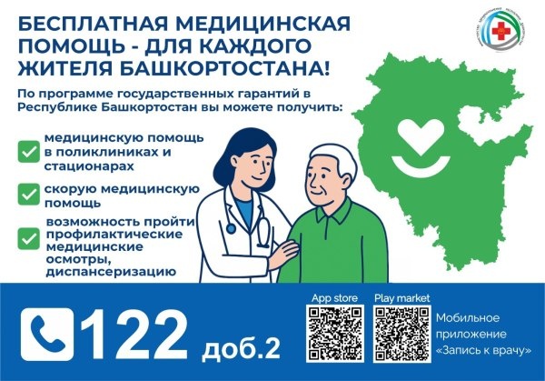 Каждый житель Башкортостана имеет право на бесплатную медицинскую помощь! По программе государственных гарантий вам доступны: Консультации и лечение в поликлиниках и стационарах. Скорая помощь при угрозе жизни и здоровью. Профилактика: диспансеризация и медосмотры. Здоровье республики наше общее дело! Источник https://uchaly102.ru/?p=95762