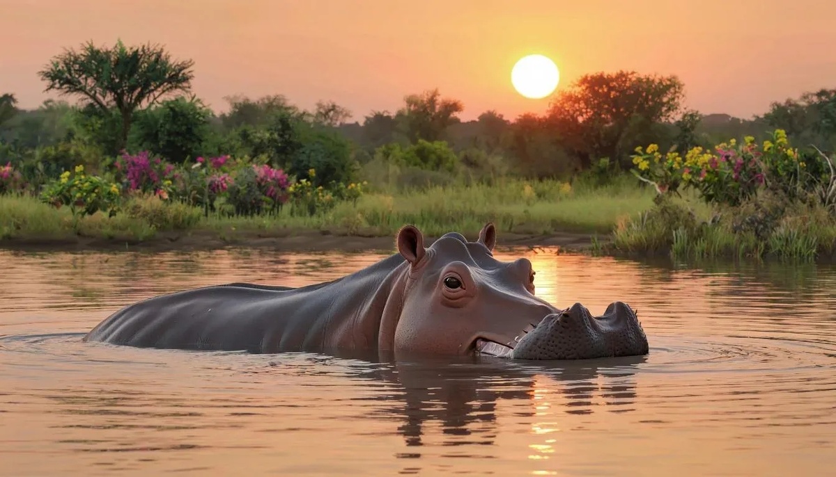Большой могучий зверь, который любит лежать в реке или озере, показывая над водой только глаза, уши и ноздри. Он огромный, серый, с толстой кожей и очень большой пастью. Это животное все знают. Кто это? Одни назовут его гиппопотамом, а другие – бегемотом.