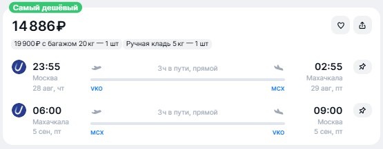 ✈️Москва - Махачкала, прямой рейс, туда и обратно, багаж до 20 кг, за 14900 рублей