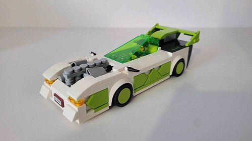 Футуристический спорткар от Luke Triton! Один забытый зелёный деталь вдохновил на этот шедевр: мотор настолько мощный, что его решили оставить открытым. Ярко-лаймовая и белая расцветка смотрится просто огонь — идеальный кастом для Street Racer series. LEGO-креатив в лучшем виде!