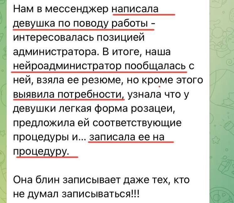 Такого не может быть, не верю Пока еще скепсис к ИИ-сотрудникам сохраняется среди предпринимателей. Многие просто не верят, что сотрудники на базе искусственного интеллекта способны качественно думать и выполнять обязанности. Однако, думаю, что в течении ближайшего года ситуация резко поменяется. Так как все больше примеров того, что нейросотрудники в разы превосходят по производительности, сообразительности и качеству «кожаных» сотрудников. Правда есть одно НО… Они должны быть качественно настроены и обучены! Собственно, что мы с командой умеем и делаем) На фото отзыв с одним из таких явных примеров👆 Призываю всех предпринимателей задуматься и, как минимум, протестировать! Всем сверхприбыли с ИИ😉 Продажи с инструкцией