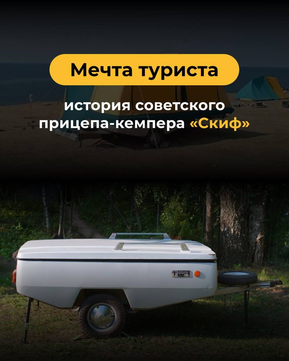 В СССР внутренний туризм был не просто популярен — его развивали на государственном уровне. И если палатки, спальники и примусы были у многих, то настоящей «туристической роскошью» считался прицеп-кемпер «Скиф» — советский прообраз современного автодома. Как появился «Скиф»? В 1975 году пермский завод «Искра» выпустил первый в СССР туристический прицеп, который раскладывался в палатку площадью 14 м². Он позиционировался как «мобильная дача» — с верандой, антимоскитной сеткой, столом и стульями. Технические особенности: • Одноосный прицеп с независимой подвеской (можно буксировать даже на «Запорожце»). • Разворачивался за 10 минут — палатка поднималась на метр над землёй. • Вмещал 3 взрослых + 4 детей (тяжёлые спали на крышке прицепа, лёгкие — на откидной полке). • Хранился вертикально, занимая всего 1 метр в гараже. «Скиф» стал культовым, но редким приобретением из-за цены: полный комплект стоил 2000 руб. (почти половина стоимости «копейки»). Сейчас «Скиф» на втор