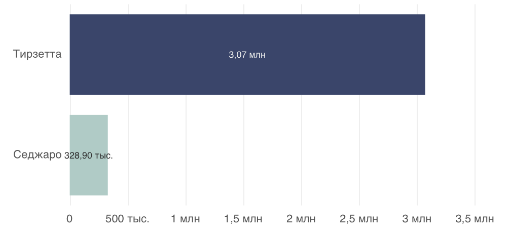6 мая 2025 года компания ПРОМОМЕД официально объявила о снижении цены на препарат «Тирзетта» на 33%. Это решение, как пишет производитель, было принято на фоне роста спроса и расширения производственных мощностей, что позволило оптимизировать издержки. В этот же день, поступил в гражданский оборот препарат «Седжаро» в двух дозировках от компании Герофарм (с тем же действующим веществом) с установленными ценами производителя: Поскольку препарат «Тирзетта» был введён в гражданский оборот в феврале 2025 года, мы проанализировали госзакупки в рамках МНН «Тирзепатид» и делимся данными: 💼 Первый аукцион на закупку препарата «Тирзетта» был объявлен 18 марта 2025 года ГУП Удмуртской Республики Фармация на сумму 15 718 руб, в количестве 1 уп (2,5 мг 0,5 мл №4). 🧾 Все госзакупки с МНН «Тирзепатид» осуществлялись пока исключительно под торговым названием «Тирзетта» от ПРОМОМЕД. 🚫 ТН «Седжаро» (с аналогичным МНН Тирзепатид) производителя «Герофарм» только вышел в гражданский оборот, поэтому зак
