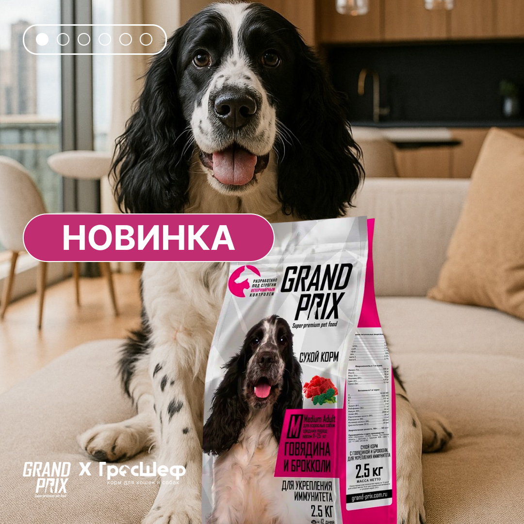 В 🐶 GRAND PRIX мы верим, что забота о питомцах — это процесс без остановок. Мы постоянно улучшаем рецептуры, ищем лучшие ингредиенты и создаём новые формулы, чтобы еда в миске была не просто вкусной, но и полезной 🐾 Так появилась наша новинка — GRAND PRIX Medium Adult с говядиной и брокколи. Это сухой корм для взрослых собак средних пород, разработанный для укрепления иммунитета, поддержания энергии и здоровья пищеварительной системы. Подробнее о составе и пользе — смотрите в карточках 👇 📦 Уже доступен к заказу!