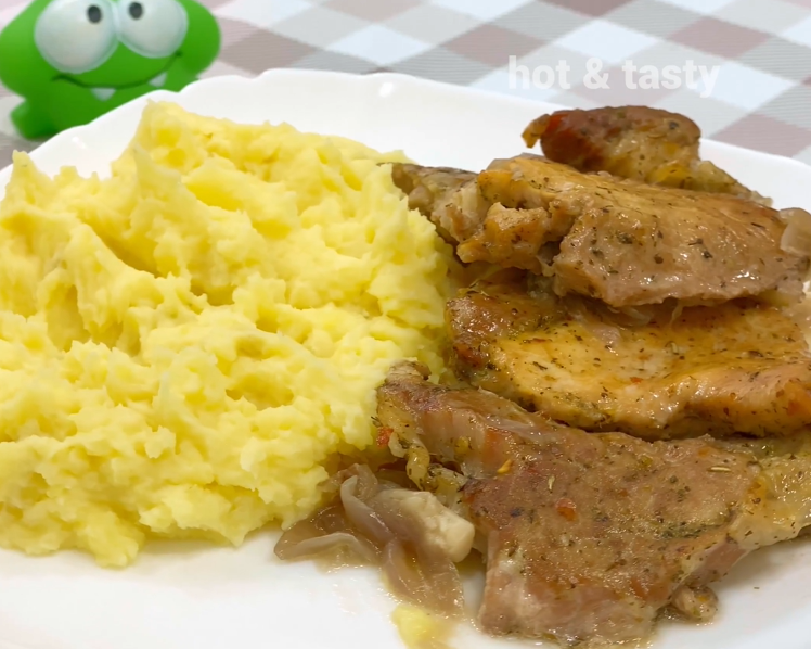 Запах запечённого мяса в духовке всегда наполняет дом особым уютом и собирает за столом всю семью. Сегодня предлагаю приготовить свиную шейку с маринованным красным луком — блюдо, которое одинаково хорошо подойдёт и для воскресного обеда, и для праздничного стола. Секрет вкуса здесь прост: маринованный лук становится мягким, сладковато-кислым, а в процессе запекания он пропитывает мясо ароматами специй. Сама шейка получается сочной, нежной и слегка пикантной благодаря перцу чили и прованским травам. Рецепт не требует сложных ингредиентов, а весь процесс приготовления занимает чуть больше часа. При этом вам не придётся стоять у плиты — духовка сделает всю работу за вас. 1. Маринование лука.