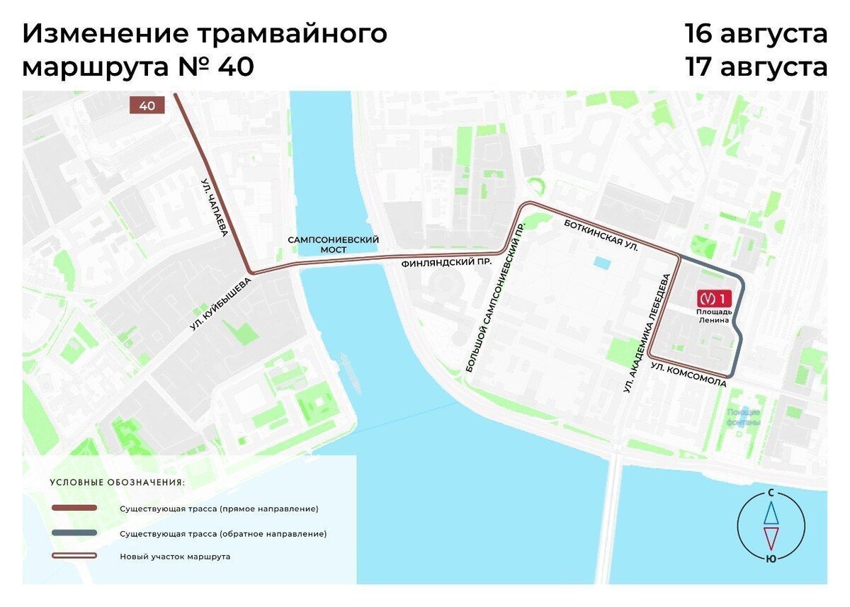 В Петербурге связи с производством дорожных работ в зоне трамвайных путей на Кронверкском проспекте 16 августа и 17 августа вносятся следующие изменения в организацию движения маршрутов городского пассажирского транспорта: