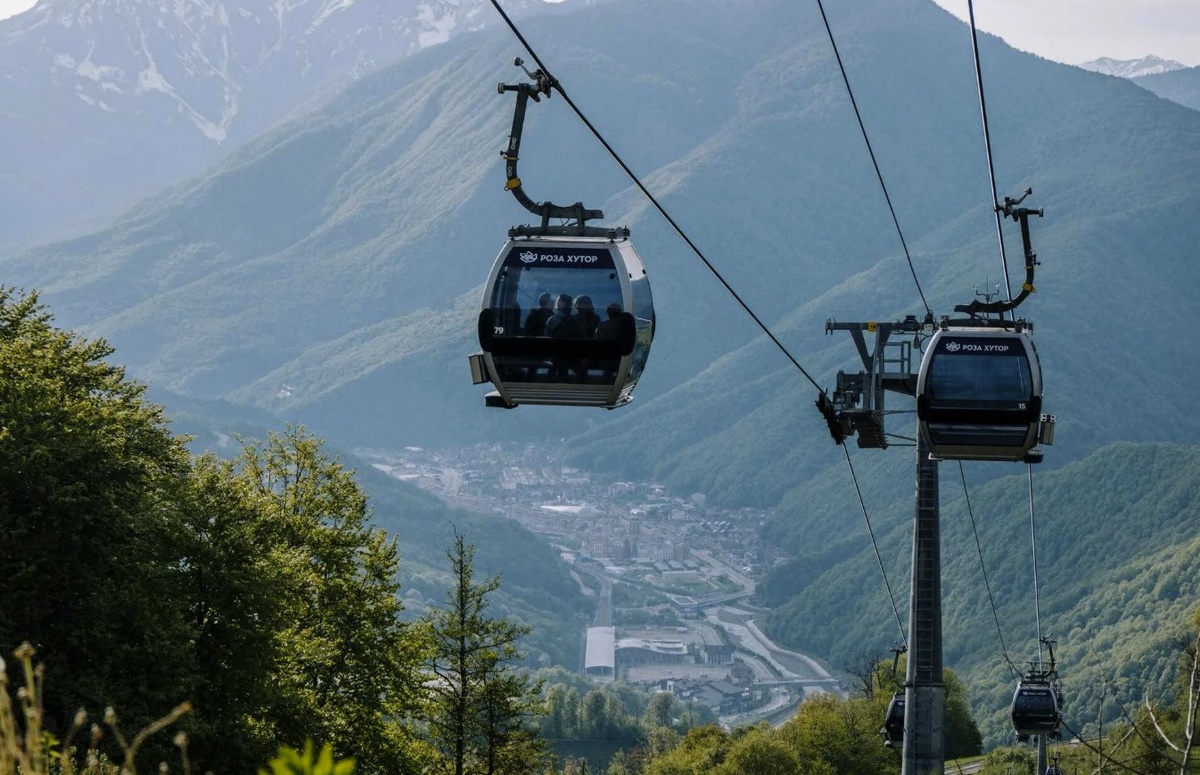 Отдельно скажу про Эдельвейс. Это другая канатка, которая с другой стороны. Начинается от Горной Олимпийской деревни. Вид там открывается на Ачишхо, но с противоположной стороны. Там мало людей. Кабина другая, квадратная. Подъём крутой, и туман поднимается быстро. Один парень с рюкзаком сидел напротив, сказал, что «каждую неделю хожу сюда и не надоедает».