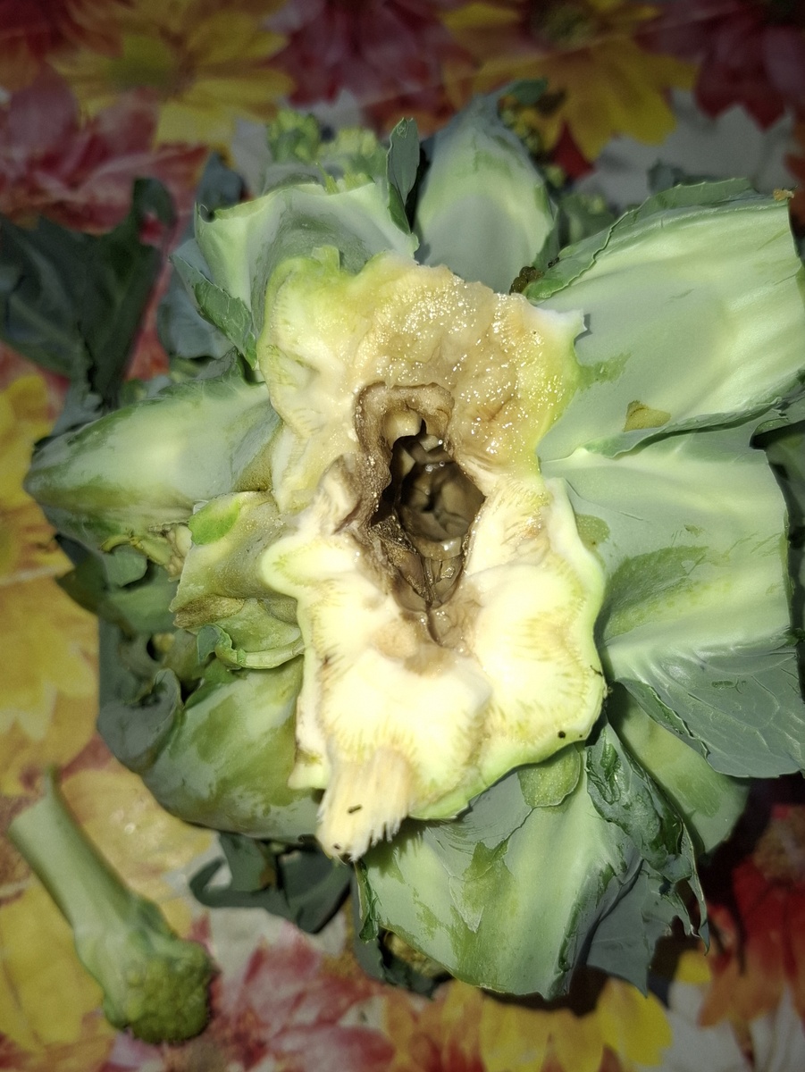 Капуста в этом сезоне подводит. Вроде так хорошо росла, но недавно я заметила, что один кочан как подсох, потрогала - а он отгнил совсем, толком не завязавшись. Ещё два срезала - кочерыжка с гнилью. Вот для примера Романеско, у неё та же проблема. Но эта поспела и я просто посрезала соцветия с кочерыги. Её так хранить нормально вполне (хотя чего её хранить, быстро съедим). Вот такая получилась, крупненькая, но вся в листьях. И что теперь с кочанной делать? Кочаны портятся. Поздней ещё нужно расти, да и Калибос только завязала, её хочется подержать. И напоследок: по весне пекли картошку в мангале, картошка была уже не очень, я счистила с неё глазки и выкинула их с прочими очистками в грядку со спаржей, сверху сорняков и землёй присыпала... Вот урожай сняла😄