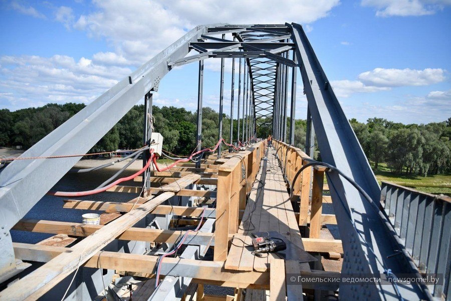 В Гомеле проверили, как идёт ремонт пешеходного моста через Сож