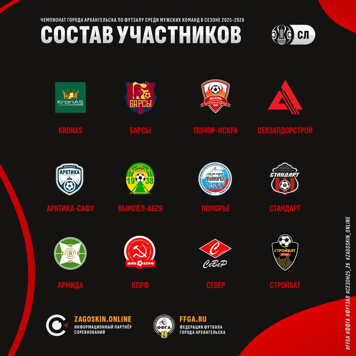 🔥 Предварительный состав участников | Суперлига Как мы видим, предварительный состав участников по лигам обрёл небывалое равенство. В каждой лиге по 12 команд. Прям глаз радуется. Но ходят слухи, что количество команд Суперлиги может быть "порезан", да и информации по новым командам в Архангельских соревнованиях по футзалу пока нет. Собрание представителей команд Суперлиги состоится 26 августа в 19:00 в офисе Федерации футбола города Архангельска. #zagoskin_online #ффга #футзал #перваялига #высшаялига #втораялига #третьялига #суперлига #сезон25_26