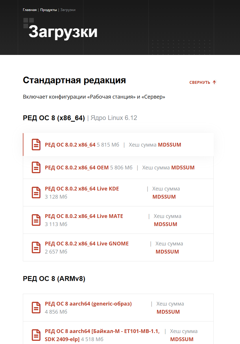 - Официальный сайт: https://redos.red-soft.ru/