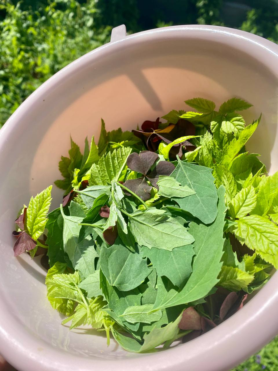 Собираем съедобные дикоросы (в народе - сорняки) на участке возле дома. Кислица (Оксалис), Лебеда (Марь белая) и Сныть идут в салат свежими. Раньше это была обычная весенняя и летняя пища наших предков, этакая «микрозелень» и «суперфуд». Сейчас у садоводов и дачников такой привычки нет, наооборот, скашивают и выдирают.