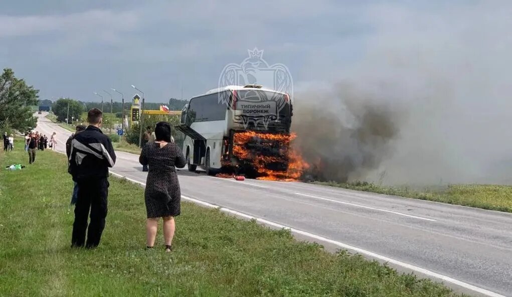 Автобус с пассажирами загорелся на трассе в Воронежской области