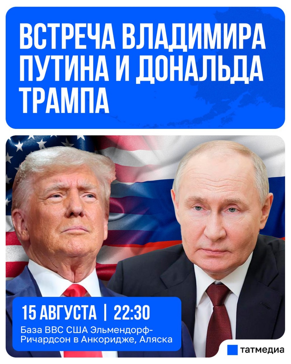 В ответ на пост 🇷🇺🇺🇸Уже сегодня состоится встреча Владимира Путина и Дональда Трампа на Аляске Она станет первой очной встречей двух лидеров с 2019 года. Эксперты подчёркивают, что проведение встречи именно на Аляске - в стратегически символичном месте - придаёт ей особую символику, учитывая исторические связи этого места с Россией и его геостратегическое значение. Следите за оперативной информацией в наших каналах - мы расскажем о ключевых моментах встречи, заявлениях лидеров и реакциях мировой общественности. Самолёт, предположительно, с Президентом России на борту уже приземлился в Анкоридже. @tatmediaofficial | Все каналы Татмедиа
