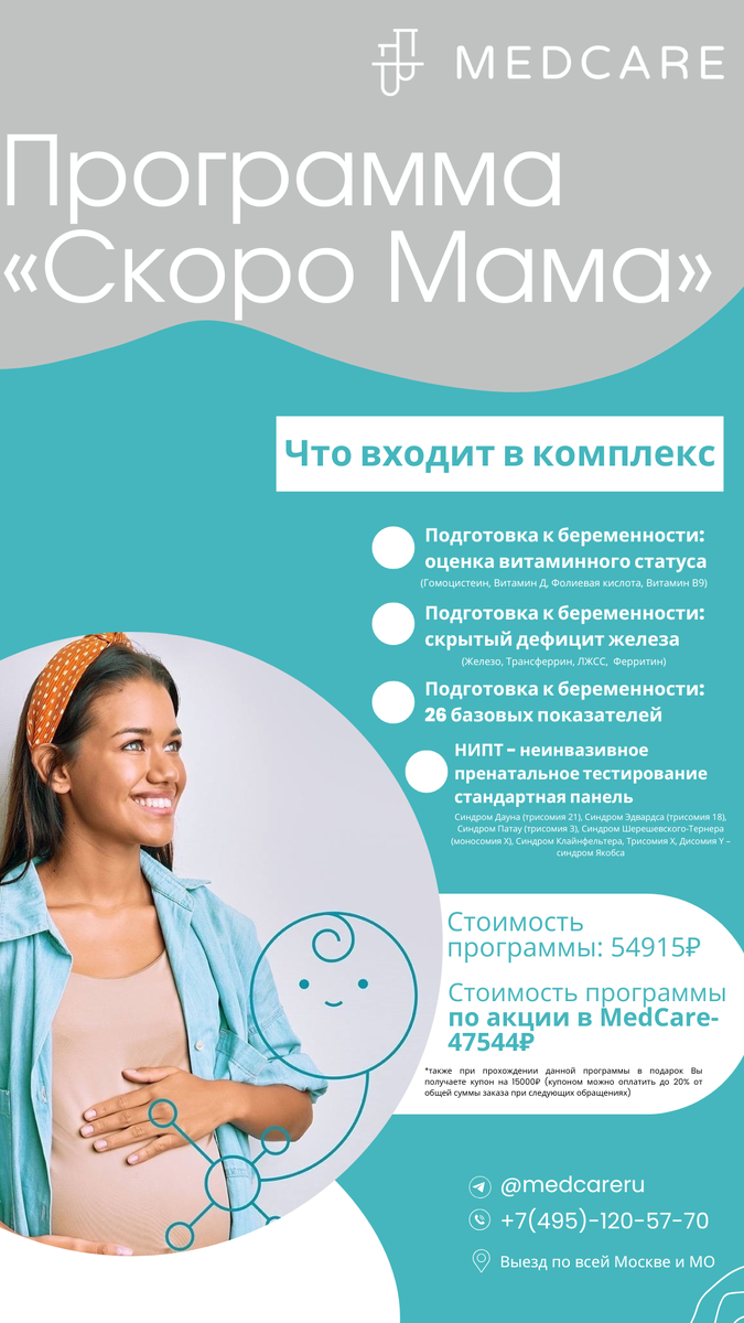 ▫️оценка железодефицита ▫️ полный чек-ап здоровья ▫️НИПТ-раннее выявление хромосомных аномалий у плода