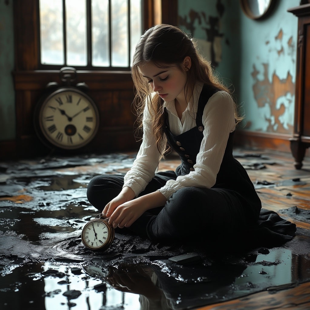 Глава 4 Тишина после взрыва механизма была оглушительной. Аня сидела на залитом черной жижей полу, дрожащими пальцами касаясь треснувшего корпуса часов. Холодный металл обжигал. ...тик... – этот звук прозвучал не в ушах, а прямо в костях, в самой глубине сознания. Невыносимое одиночество и ужас охватили ее. Отец исчез. Остались только эти... осколки проклятия. Она хотела вскочить, убежать, выбросить мерзкую штуковину в мусоросжигатель. Но что-то удержало. Не голос разума, а что-то глубже, темное и цепкое, как щупальце. Жажда. Жажда понять. Жажда найти отца. Жажда... власти, что ли? Той самой, что свела его с ума? Эта мысль вызвала приступ тошноты, но рука сама потянулась к крупному осколку сапфирового стекла, валявшемуся рядом. Как только пальцы коснулись холодной, гладкой поверхности, мир взорвался. Не остановился. Не замедлился. Он раскололся. Аня увидела мастерскую, но одновременно и что-то другое. Бесконечный коридор из темного, отполированного до зеркального блеска металла, ухо