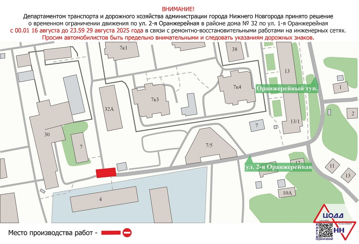 В связи с проведением ремонтных работ на теплосетях в Нижнем Новгороде будет временно ограничено движение транспорта по улице 2-я Оранжерейная. Об этом сообщает пресс-служба администрации Нижнего Новгорода. Вы ещё не с нами в Telegram? Подписывайтесь, всё самое интересное тут! Ограничение вступит в силу с 00:01 16 августа и продлится до 23:59 29 августа. Проезд будет закрыт в районе дома №32А по улице 1-я Оранжерейная. Объезд указанного участка возможен по прилегающим улицам. Специалисты призывают водителей заранее ознакомиться с изменениями в схеме движения, соблюдать осторожность и следовать указаниям дорожных знаков. Напомним, редакция сайта pravda-nn.ru создала telegram-канал «Проезда нет», где оперативно сообщается об участках перекрытых дорог в Нижнем Новгороде. Подписывайтесь, чтобы быть в курсе! Ранее на сайте pravda-nn.ru сообщили о том, что проезд вдоль трех домов на проспекте Гагарина запретили до конца сентября. Ещё новости по теме Участок улицы Маршала Воронова перекроют и