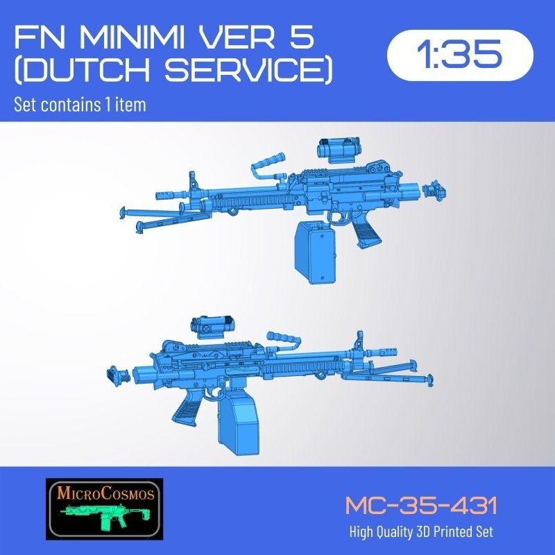 Греческая 3D MicroCosmos выпустила на 3D-принтере модель голландского варианта пулемета FN Minimi в масштабе 1/35: FN Minimi VER 5 (Dutch service) - каталожный номер МС-35-431