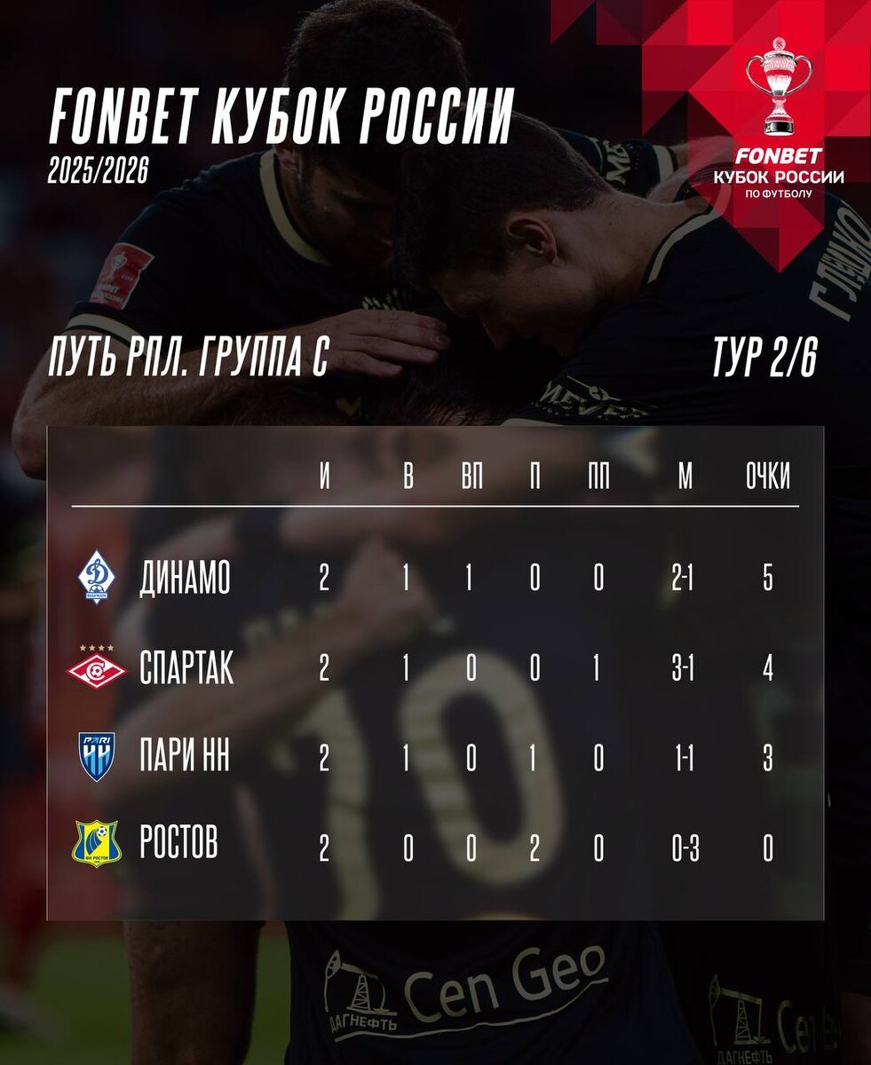 Перед пятым туром чемпионата предлагаем взглянуть на таблицу FONBET Кубка России