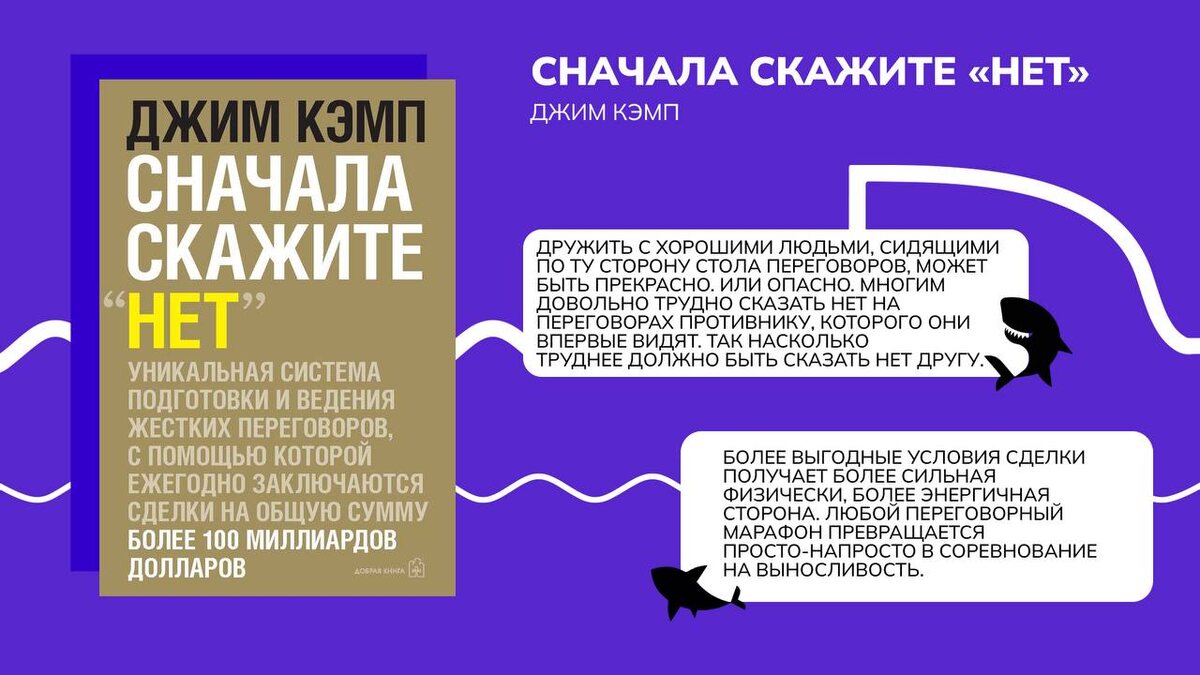 КАК ПЕРЕСТАТЬ БОЯТЬСЯ ПОТЕРЯТЬ КЛИЕНТА И НАЧАТЬ ЗАРАБАТЫВАТЬ? Сегодня мы рекомендуем Вам не книгу! А рекомендуем – «партнёра»! В бизнесе, как и в любви, боязнь потерять может заставить творить непростительные вещи. Вы готовы на все, лишь бы удержать ценного клиента, даже если это означает урезать собственную прибыль до неприличия. Но стоп! Неужели вы действительно верите, что успех измеряется количеством скидок, которые вы раздали? Джим Кэмп уверен: нет! Из книги вы узнаете: 🔵как перестать зависеть от результата переговоров, который вы не можете контролировать, и сконцентрироваться на том, чем вы можете управлять, – на собственном поведении; 🔵что и как следует говорить за столом переговоров: как вести оппонента с помощью правильно поставленных вопросов; 🔵как противостоять сильному противнику, использующему давление и манипуляции. 🔥, если «дорого» — это не приговор, а фильтр; 👍, если готовы выйти на новый уровень переговорных навыков. Акулы Зообизнеса. Канал, который смотрит
