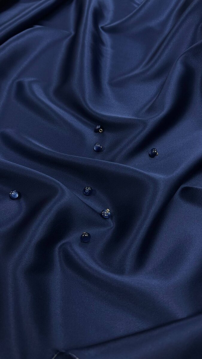 Атласный шелк с эластаном в красивом, глубоком синем цвете.