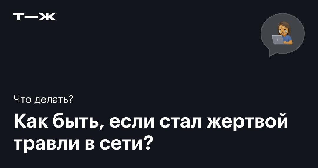 Может показаться, что травля в интернете невинна и неопасна. Подумаешь, можно просто закрыть ноутбук и не заходить по ссылке, где на вас нападают озлобленные комментаторы. Но если в открытом доступе окажутся ваши личные данные, фото или адрес, хейтеры начнут атаковать ваше окружение, а ваши страницы в соцсетях взломают недоброжелатели — просто не заходить в интернет будет уже недостаточно. Объясняем, что делать, если вы столкнулись с кибербуллингом — с психологической и юридической точки зрения: https://t-j.ru/m-tg/cyberbullying-adults/