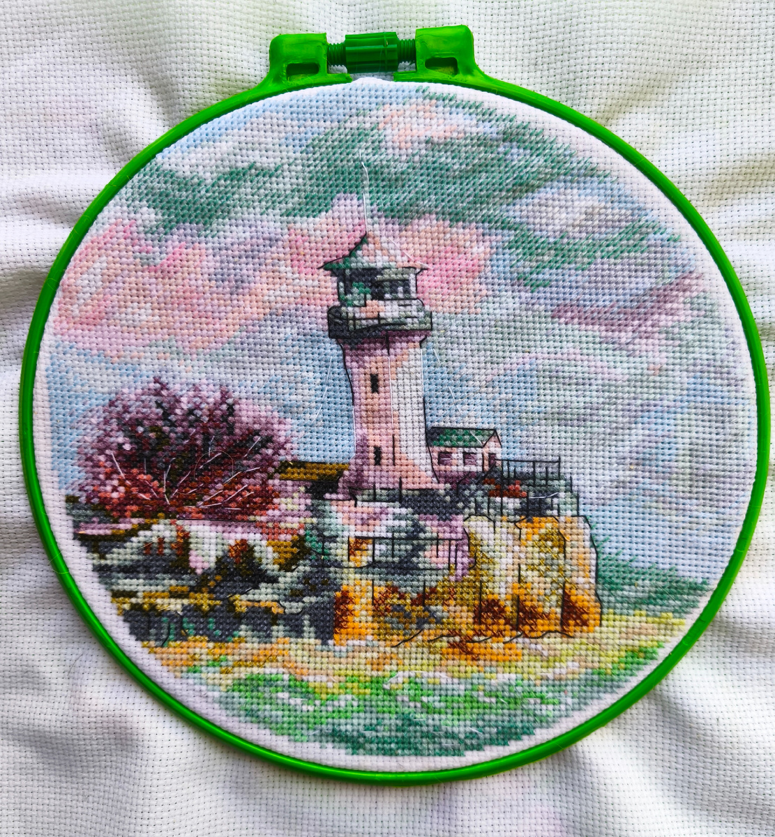 Находясь в процессе отшива маяка, думала, куда же мне теперь его деть. Мама очень хочет повесить его в кухне, чтобы она могла любоваться им всё время. А во мне пока борются два противоположных мнения.