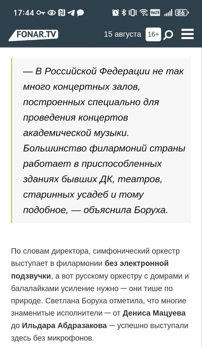 Директор Белгородской филармонии Светлана Боруха отреагировала на критику акустики в залах учреждения, оставив подробный комментарий под нашей публикацией ВКонтакте.