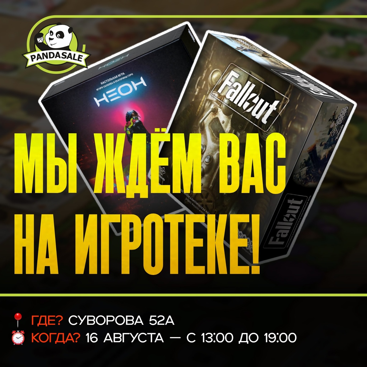 ⚡️ Напоминаем, что уже завтра мы ждём вас на нашу хардкорную игротеку с ведущей Ульяной Коновальцевой! 📍 Где: Суворова 52А ⏰️ Когда: 16 августа — с 13:00 до 19:00 ➕ Участие: 300 рублей 📞 Вопросы? Звоните: +7 (908) 177-87-17 🎁 Заказать игру Что будет? • Научим играть в Неон, Fallout; • + 300 настольных игр; • Опытные ведущие помогут освоиться; • Дружелюбная атмосфера для игроков любого уровня; • Новые знакомства. ✏️ Предварительная запись в комментариях к посту тут. Проведите свою субботу ярко и незабываемо вместе с PandaSale! 🐼 Правила посещения мероприятий. #PandaSale #PandaPlay
