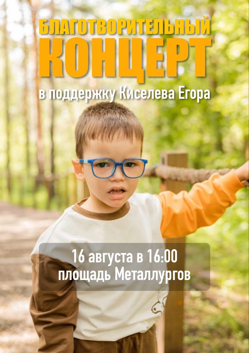 Завтра, 16 августа, в 16 часов на центральной площади Белорецка пройдёт благотворительный концерт в поддержку Егора Киселёва. История этого маленького мальчика трогает до глубины души. В пять месяцев у Егора произошли первые эпилептические приступы. Спустя три недели, после МРТ, невролог поставил первый диагноз: эпилепсия. После консультации с генетиком и кардиологом, количество утверждённых диагнозов выросло. За свои почти четыре года жизни Егор очень часто лежал в больнице. Сейчас его иммунитет сильно понижен.