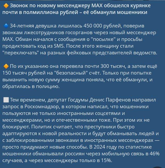 Ну что же. Приготовились. Уже и через Макс мошенники обманывают.