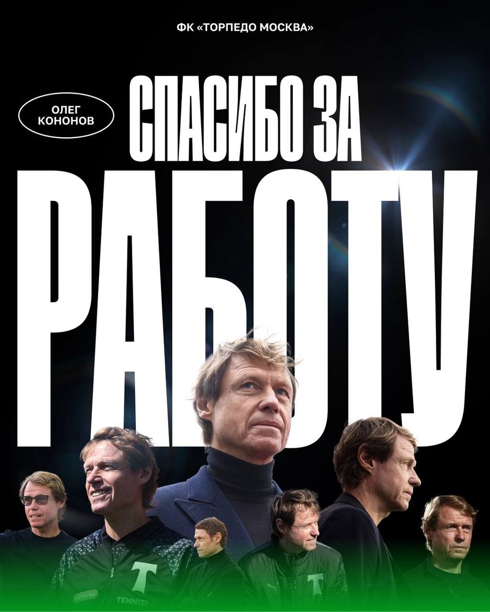 🚨 Футбольный клуб «Торпедо Москва» и главный тренер Олег Кононов договорились о расторжении контракта по соглашению сторон
