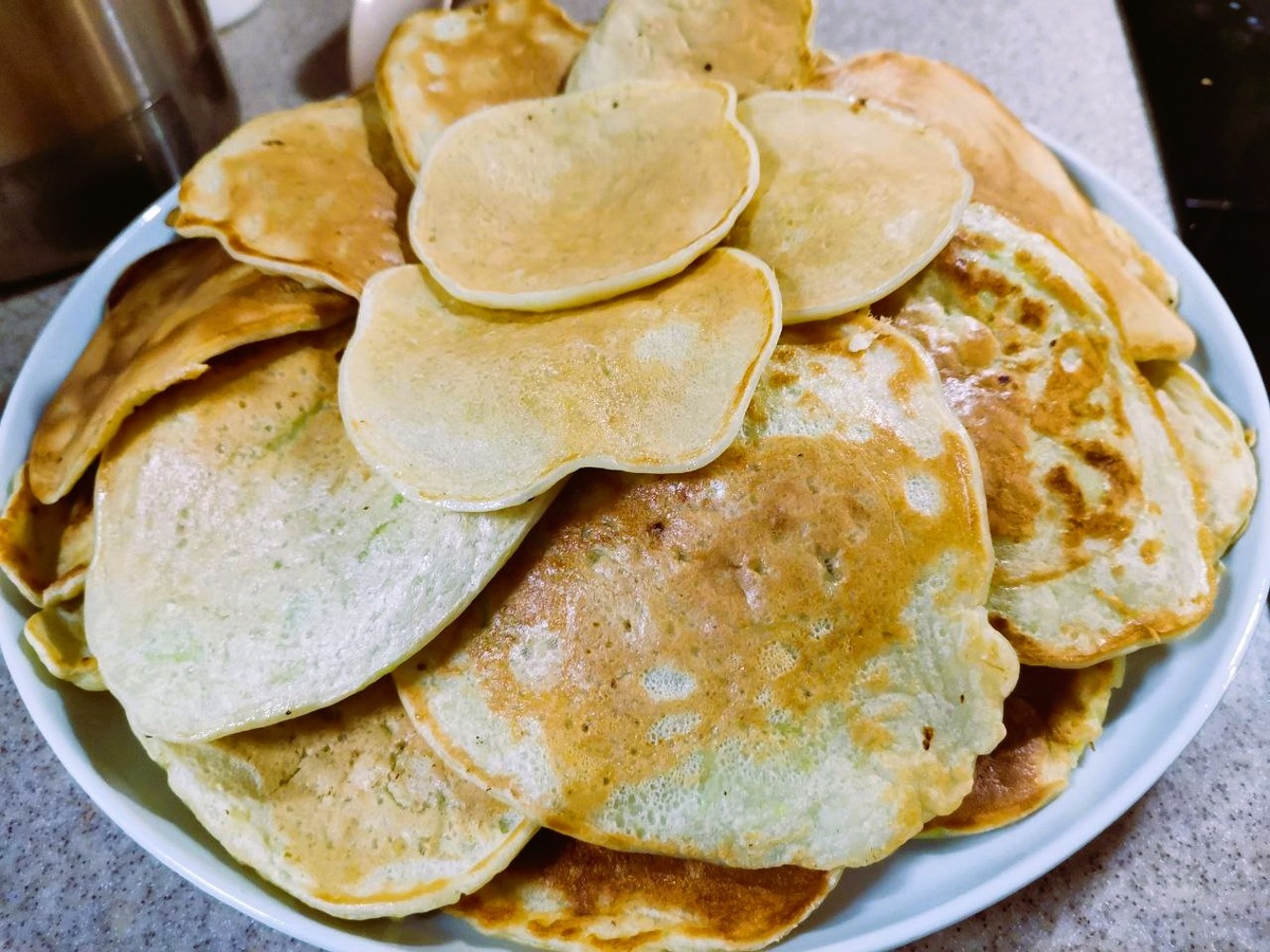А у нас вчера на ужин были кабачковые оладушки... 😋 Маленькая предыстория: в этом году урожай кабачков в саду на даче у бабушки (мамы Алисы) хороший. Не сказать, что лучше, чем в другие годы, но и вовсе не хуже. Бабушка их все (почти до одного) отдаёт нам. Особо не любит с ними возиться. Мы тоже не мудрствуем лукаво (икру, например, не готовим) — много хлопот с этим. А вот оладьи — другое дело. Готовятся быстро, просто, практично и, самое главное, вкусно. Любят их у нас в семье все единогласно. Поэтому кабачки никогда не застаиваются, вопреки старой народной шутке, что «за август один кабачок может сменить до 8 хозяев». И даже если кто-то другие дарят эти чудо-плоды — сразу уходят влёт, не задерживаясь в углу за дверью. Итак. Как готовим мы. Для начала всё моется и чистится. За это всегда отвечает Роберт. Прямо-таки требует, чтобы это доверили ему. Любит он почему-то это дело. Алиса тем временем трёт кабачки на мелкой тёрке (2 больших и 1 маленький общим весом 2 кг). Роберт приготавли
