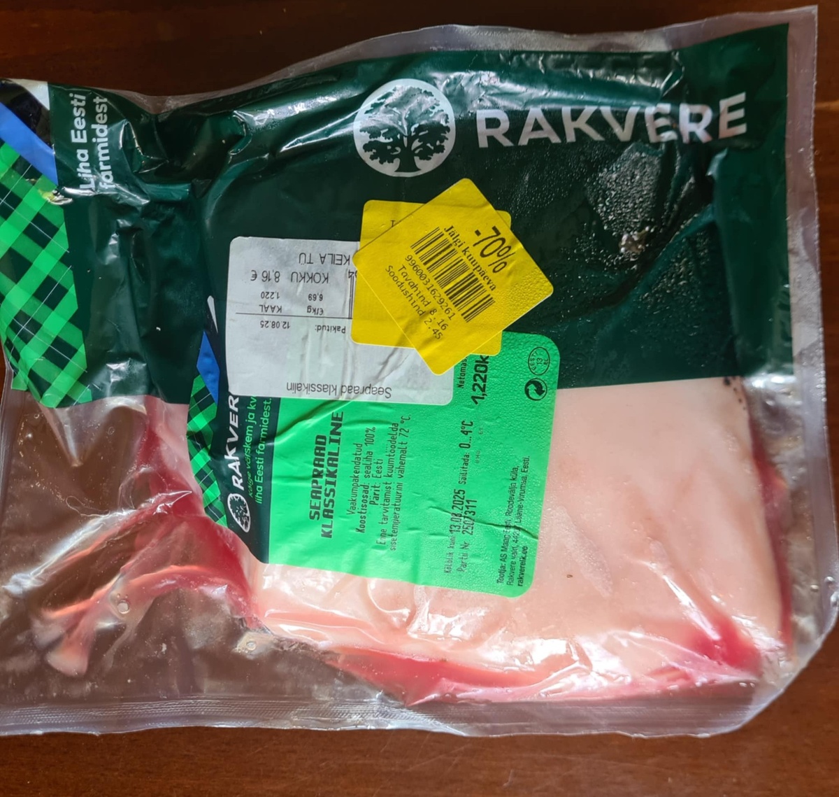 Сегодня очередная порция продуктов по уценке. Сардельки и говядина по 90% скидке, всё остальное 70% Свинину вытащила из упаковки, промыла, обсушила салфетками и заморозила целым куском. Будем позже запекать Гуляш тоже промыла, разложила на 2 порции и убрала в морозилку Куриные части тоже промыла разложила по пакетам - филе в один пакет, голени и бёдра в другой. Говядину промыла, убрала в морозилку. Когда буду делать фарш добавлю её туда. Полукопчёную колбасу позже порежу кубиком и уберу в морозилку. Будет на Солянку и на пиццу. Сардельки будут сегодня на ужин и завтра останется сыну на обед. Гриль- колбаски завтра пожарим на мангале. Итого 13,40 (1257,23руб) В понедельник, скорей всего, будет ещё какая то часть продуктов, а потом знакомая уйдёт в отпуск на 2 недели. Пока она будет в отпуске будем есть то, что уже есть в морозилке. Планированием меню займусь в понедельник. Буду пытаться ещё больше сократить траты на питание. В планах утепление фронтона на задней стороне дома