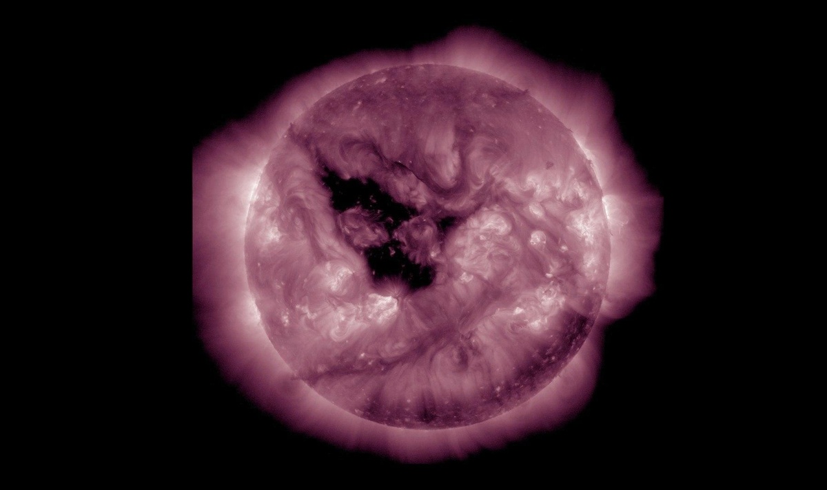 За последние сутки ее площадь увеличилась примерно на 50%. Ученые зафиксировали стремительный рост крупной корональной дыры на стороне Солнца, обращенной к Земле. Как сообщила Лаборатория солнечной астрономии ИКИ и ИСЗФ РАН. Особенность этой дыры в том, что потемнение наблюдается не только в верхних, но и в нижних слоях солнечной атмосферы. Это указывает на формирование особенно плотного потока солнечного ветра. По прогнозам ученых, скорость солнечного ветра начнет расти 18 августа и к 19-20 августа может достичь 800-900 км/с, что в 2-2,5 раза выше нормы. До этих чисел, включая ближайшие выходные, магнитное поле Земли останется спокойным. Воздействие корональной дыры может влиять на геомагнитную обстановку в течение 7-10 дней. фото: © Лаборатория солнечной астрономии ИКИ РАН и ИСЗФ СО РАН