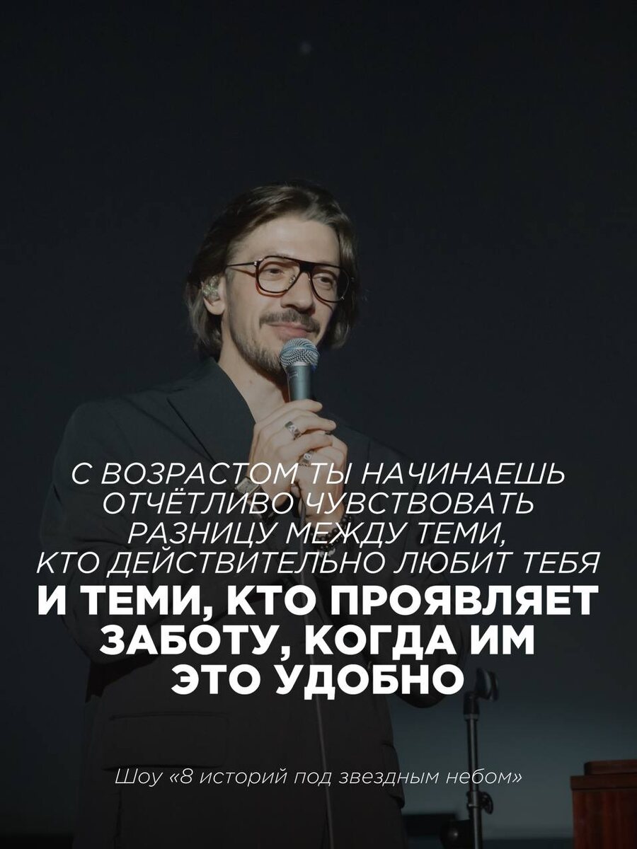 Если вы устали чувствовать, что вас не выбирают, то возможно пришло выбрать себя? 🫂 В августе сразу два города смогут прочувствовать весь спектр эмоций от шоу «8 историй под звездным небом»: • Санкт-Петербург | 26 августа ➡️ КУПИТЬ БИЛЕТ • Москва | 27 августа ➡️ КУПИТЬ БИЛЕТ